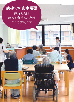 生活リハビリを効果的に行うために、私たちは病室や病棟全体を「暮らしの場」として活用しています。