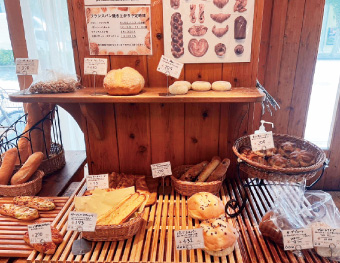 木の暖かみを感じるかわいらしい店内には甘いパンから総菜パン、クッキーやラスクまで幅広く並びます。