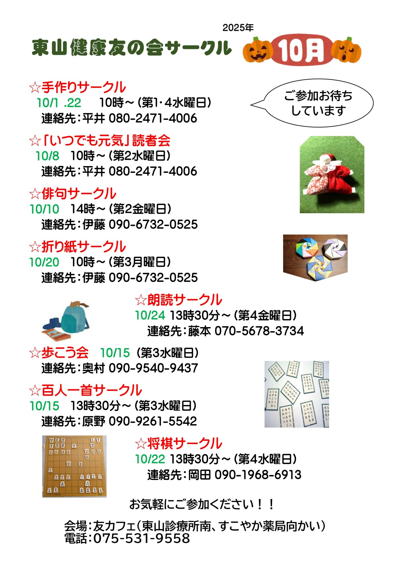 2025-09-28 / 最終更新日 : 2025-09-28 npo-hokenkai 友の会 東山健康友の会サークル案内(2025年10月分) サークル紹介はこちら FacebookXBlueskyHatenaCopy
