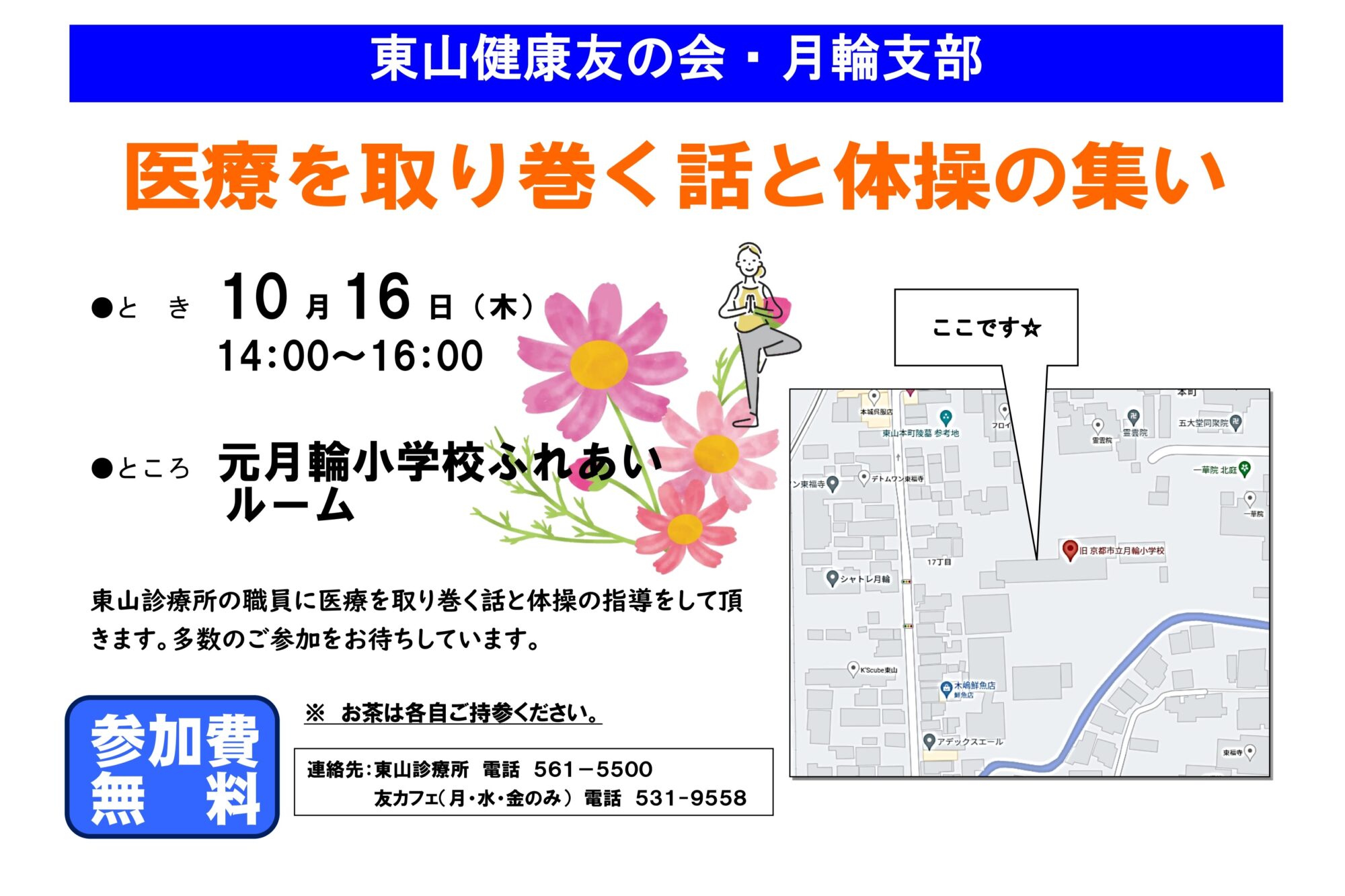 2025-10-08 / 最終更新日 : 2025-10-08 npo-hokenkai ご案内 友の会・月輪支部「医療を取り巻く話と体操の集い」(10/16)ご案内 FacebookXBlueskyHatenaCopy