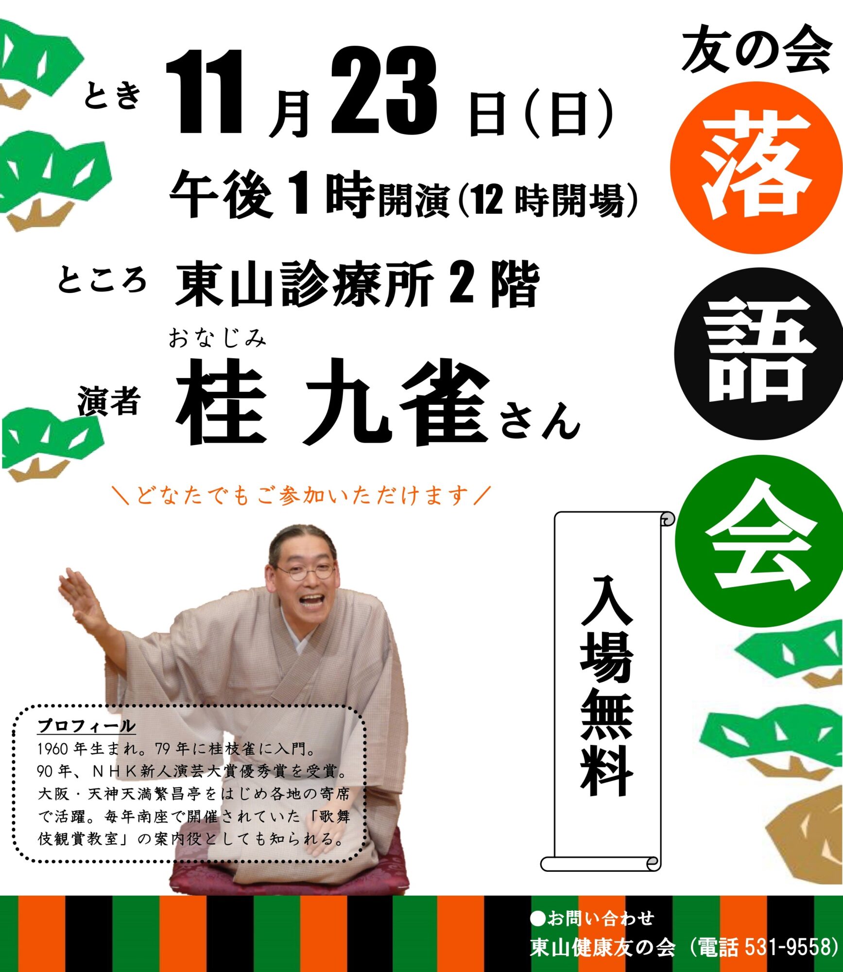 2025-10-08 / 最終更新日 : 2025-10-08 npo-hokenkai 友の会 東山健康友の会「落語会」(11/23)のご案内 参加申込書付きPDFはこちら FacebookXBlueskyHatenaCopy
