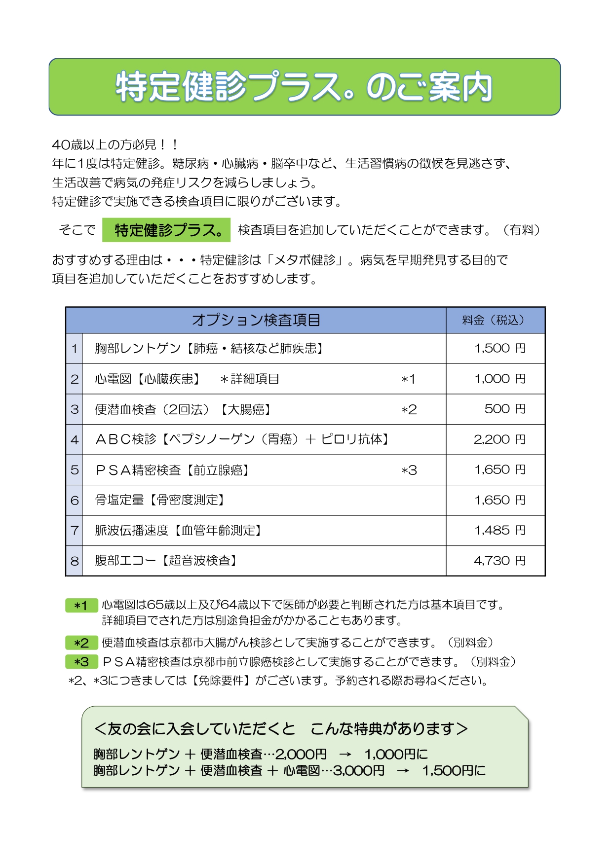 ◎特定健診にプラスして、自由に検査項目を追加していただくことができます。(有料)